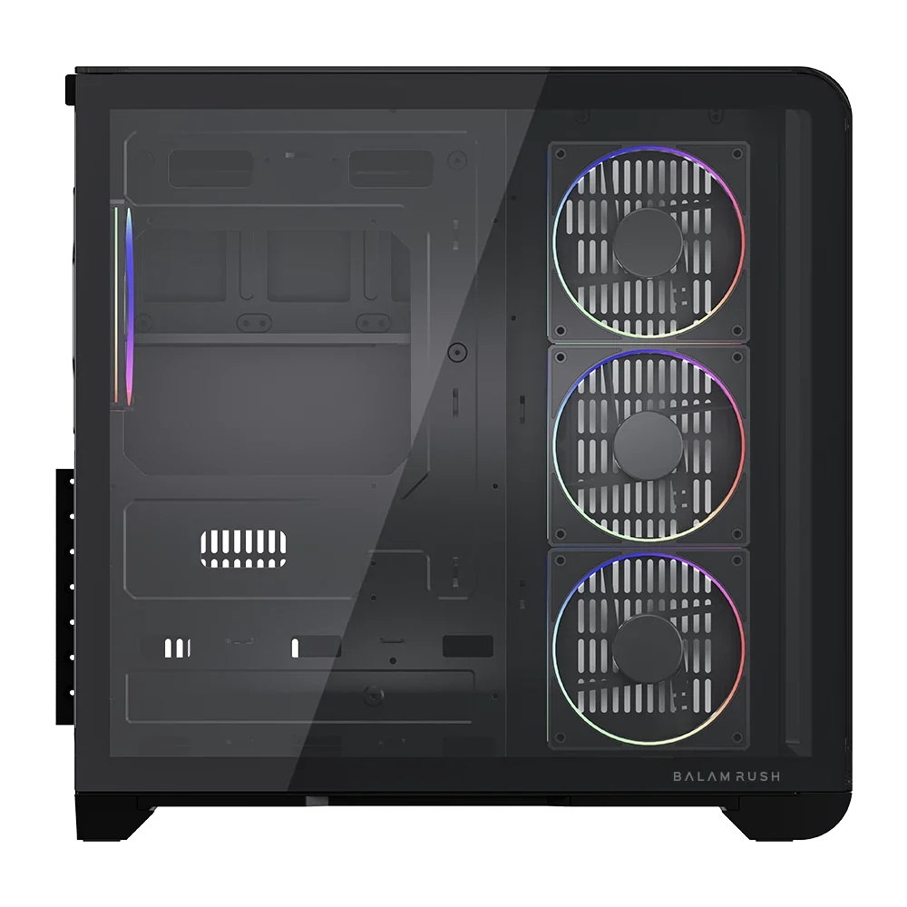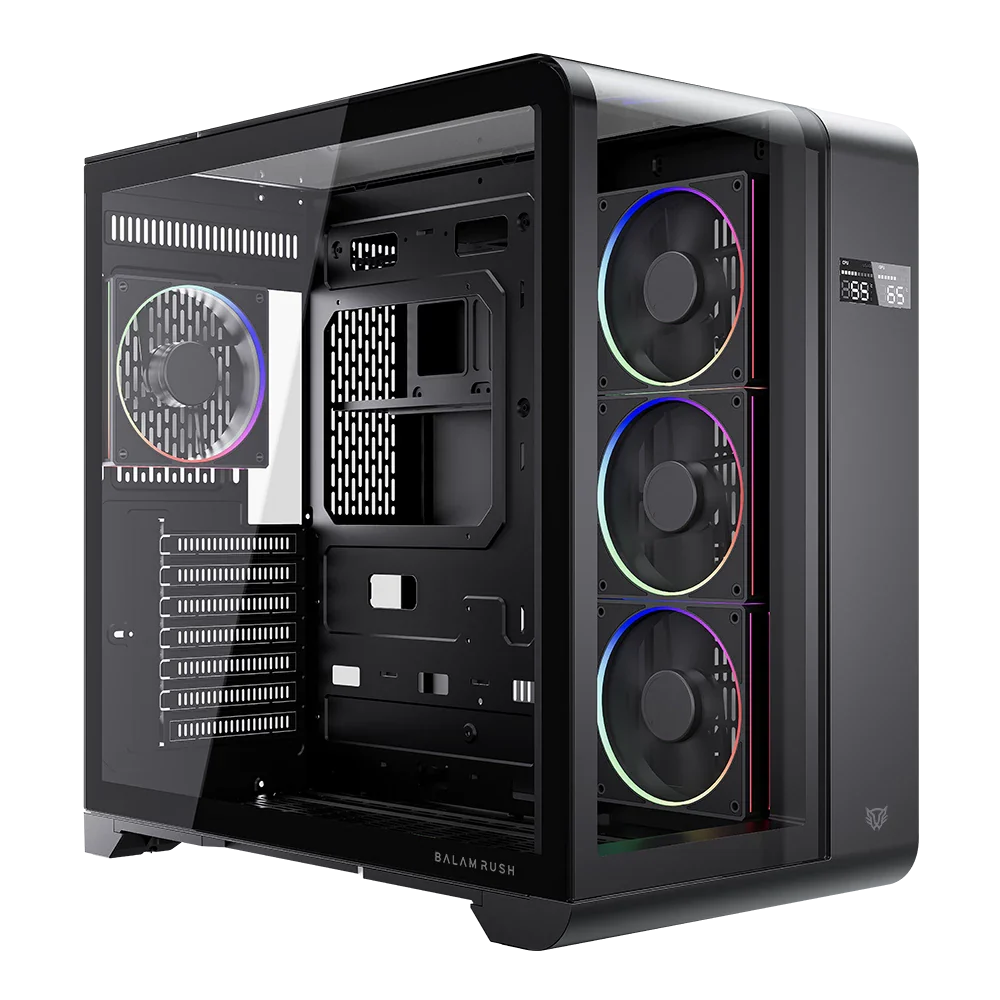 Gabinete Balam Rush Tank Expert Curve 7400 | Media Torre con Display | Max MB ATX | GPU 410 mm | 1x USB Tipo C 3.1 + 1x USB 3.0 + 1 USB 2.0 + Audio + 4x Ven ARGB | Paneles de Cristal | Legend | Negro