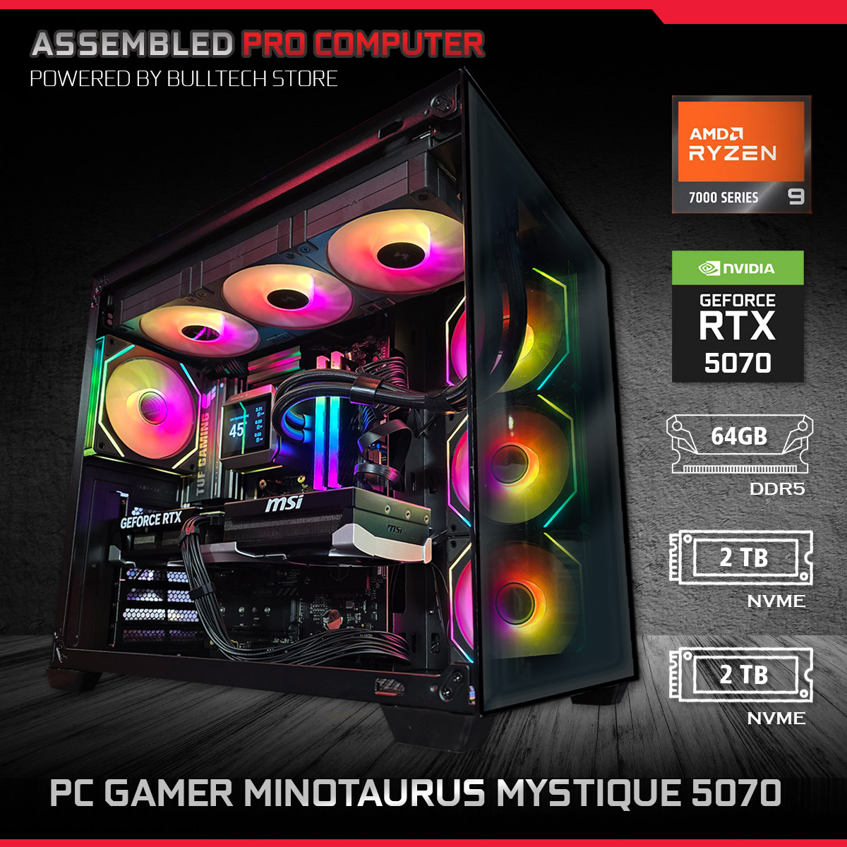El poder está en el hardware, en el corazón de tu computadora ASSEMBLED PRO COMPUTER. Nuestra “PC Gamer Minotaurus Mystique 5070” está construída con componentes de alto desempeño. Una computadora lista para las tareas más exigentes. Esta PC Gamer te ofrece un rendimiento superior, gráficos más detallados, personalización avanzada y la posibilidad de acceder a experiencias de juego exclusivas.