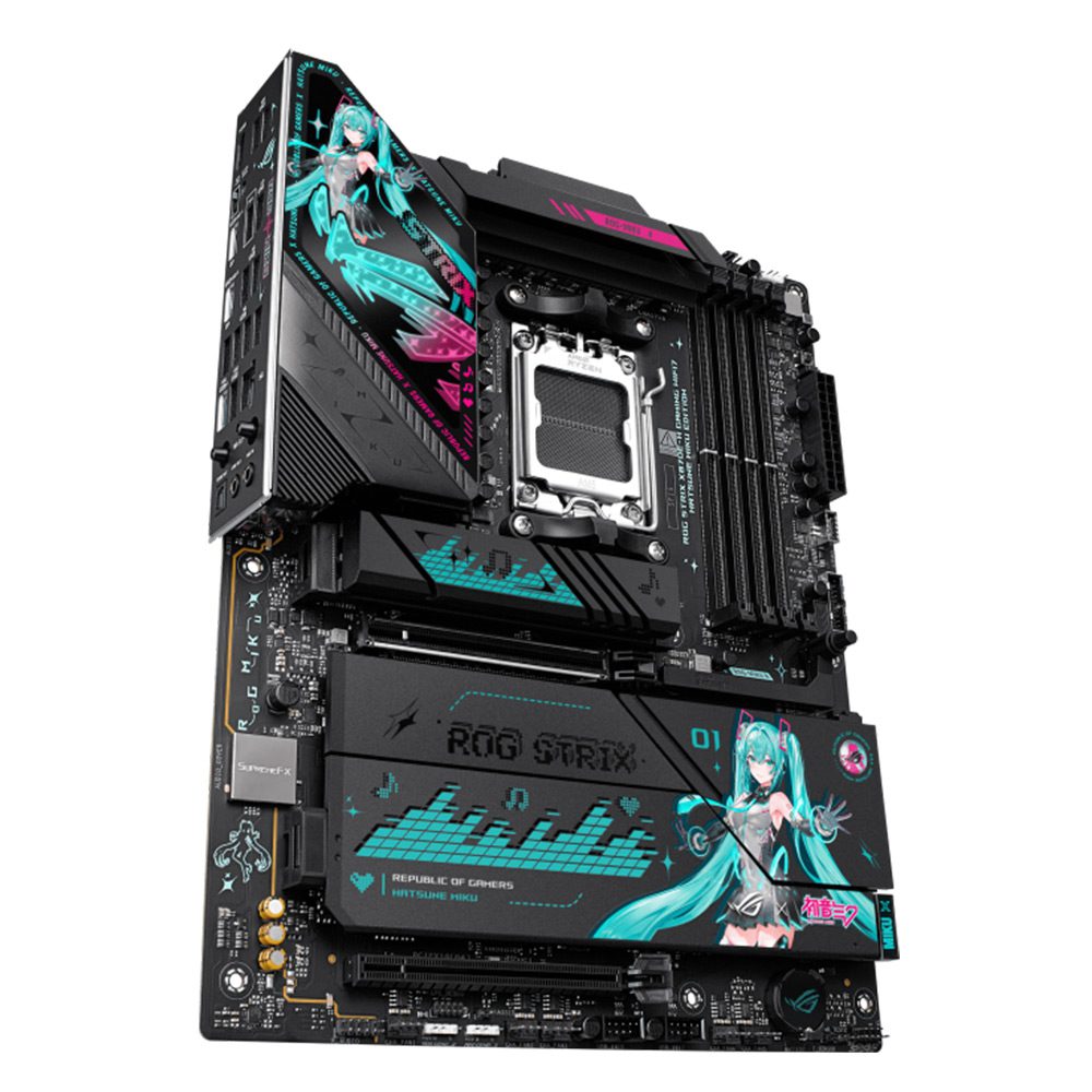 ROG continúa su colaboración con la estrella pop virtual Hatsune Miku con un sistema de juego completo centrado en la estética de ciencia ficción de ROG y la combinación de colores azul verdoso y rosa característica de Miku. La colección combina el estilo característico de Hatsune Miku con el rendimiento superior de ROG, calidad premium y funcionalidad versátil para juegos competitivos o tareas diarias. Los productos incluyen una placa base, tarjeta gráfica, carcasa de PC, refrigerador todo en uno, carcasa SSD, fuente de alimentación, monitor y ropa, lo que permite a los jugadores crear una configuración de juego completa que irradia la vibrante estética de Miku.