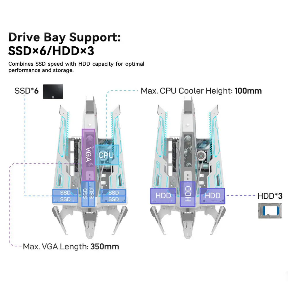 El gabinete es uno de los componentes más importantes de la computadora Gamer & Profesional, ya que no solo protege los componentes internos, sino que también es una parte clave del aspecto visual de tu Nueva Computadora. Con el “Gabinete Gamer Alseye STAR ARK” define todas tus posibilidades de ensamble.