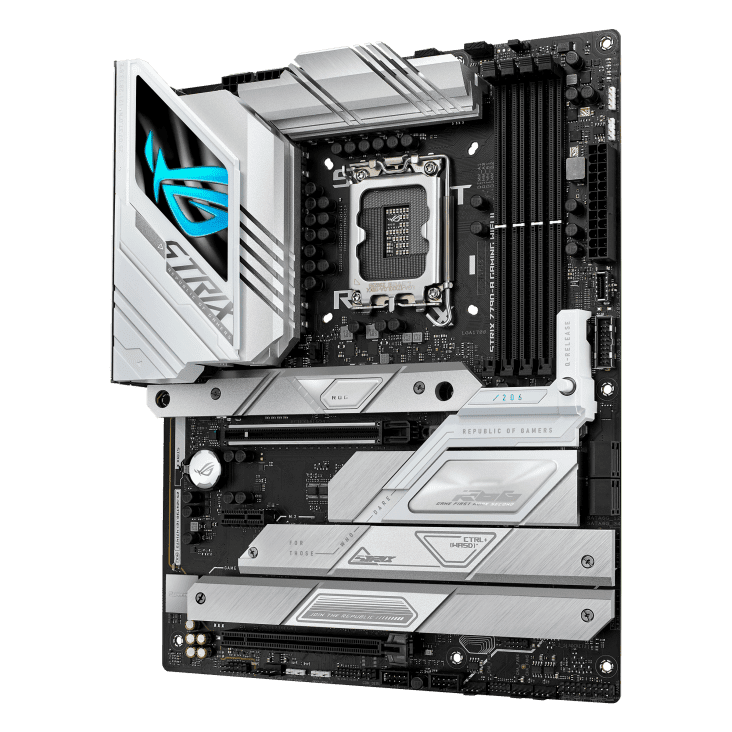 Motherboard ASUS ROG Strix Z790-A Gaming WiFi II, Intel® Z790 LGA 1700 ATX, 16+1 fases de poder, DDR5, cinco puertos M.2, PCIe® SafeSlot 5.0×16 con Q-Release, WiFi 7 con nueva antena Wi-Fi blanca, USB 20 Gbps Type-C® con PD 3.0 hasta 30W, AI Overclocking, AI Cooling II, y Aura Sync RGB.